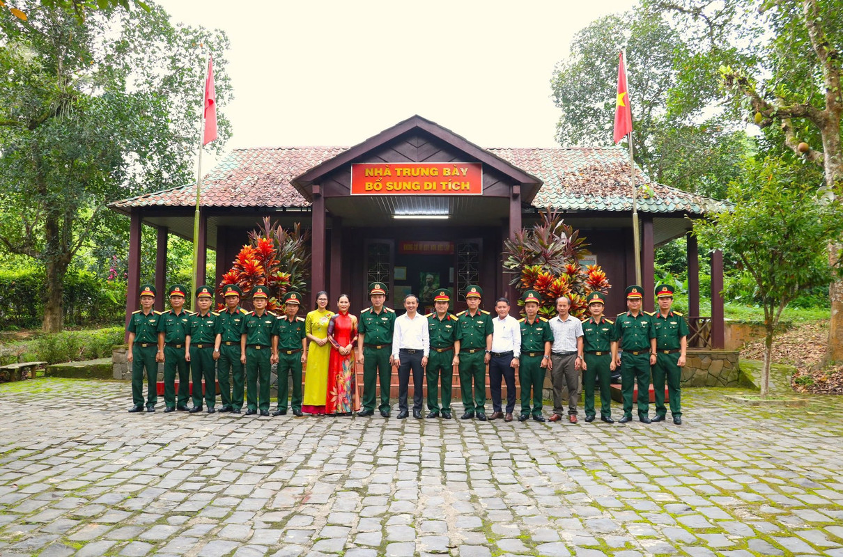 Đoàn công tác chụp hình lưu niệm tại khu di tích lịch sử Căn cứ Bộ tư lệnh Quân Khu V