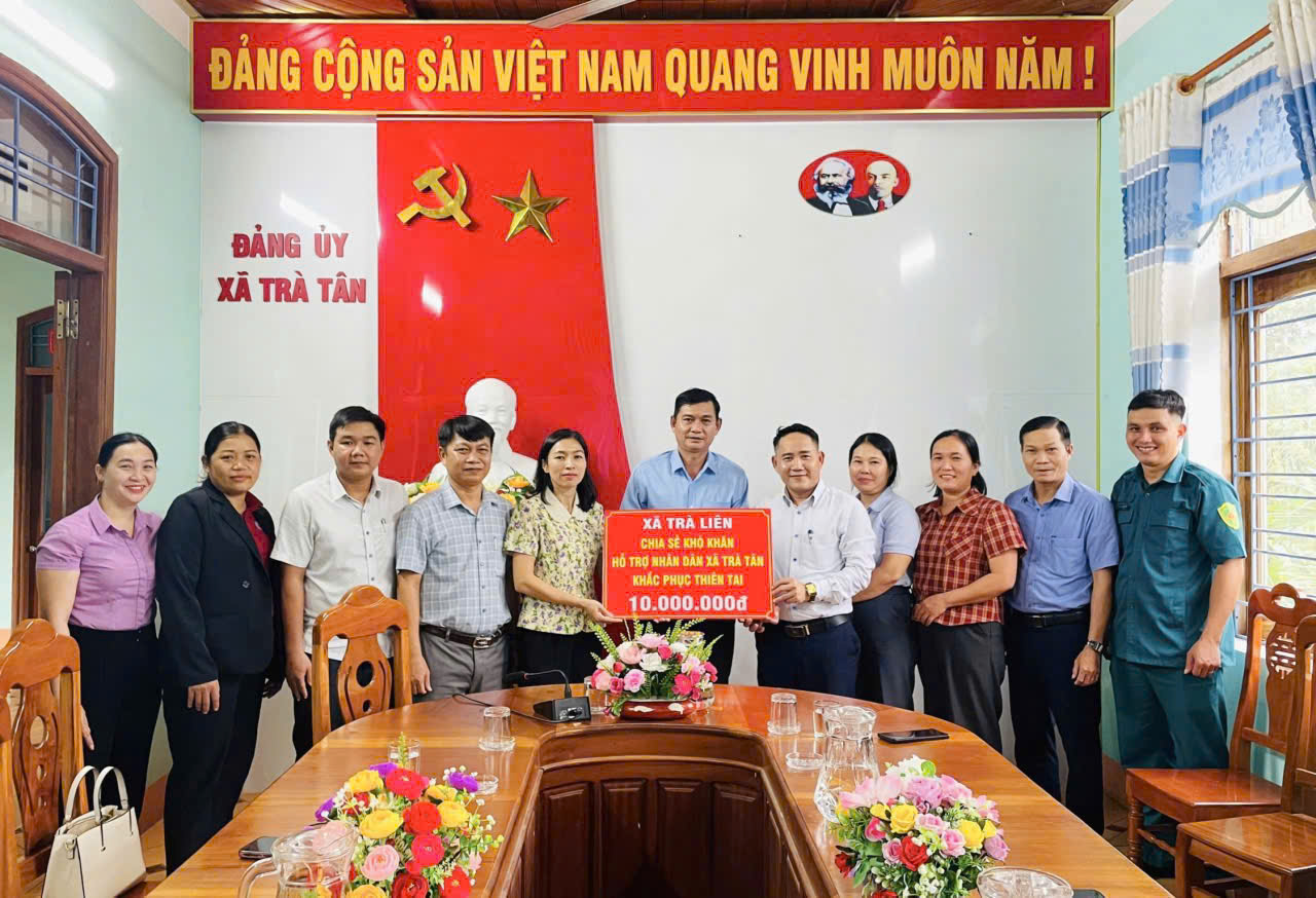 Trong đó, nhiều đơn vị đã có sự hỗ trợ thiết thực, tiêu biểu như: Ngân hàng Nông nghiệp và Phát triển Nông thôn – Chi nhánh Nam Đà Nẵng trao 200 triệu đồng tiền mặt giúp địa phương khắc phục hậu quả mưa lũ; Đảng ủy, UBND, Ủy ban MTTQ Việt Nam xã Trà Liên trao 10 triệu đồng tiền mặt hỗ trợ xã Trà Tân; Sở Văn hóa, Thể thao và Du lịch thành phố Đà Nẵng cùng một số doanh nghiệp trao 120 triệu đồng gồm tiền mặt và nhu yếu phẩm cho các hộ dân bị thiệt hại nặng và lực lượng tại chỗ. Ngoài ra, nhiều đoàn, nhóm thiện nguyện, tổ chức tôn giáo và cá nhân hảo tâm như Phật giáo Hòa Hải (An Giang), Đoàn Hoa Long (Đắk Lắk), Chùa Lá Gò Vấp, Công ty TNHH Oneway, Công ty cổ phần An Group, Đoàn Quảng báo Quảng Nam, Đoàn Quân Âm Đường, các nhóm thiện nguyện cá nhân… cũng đã trực tiếp về với Trà Tân, trao hàng trăm suất quà và tiền mặt, chung tay sẻ chia khó khăn cùng bà con vùng lũ.