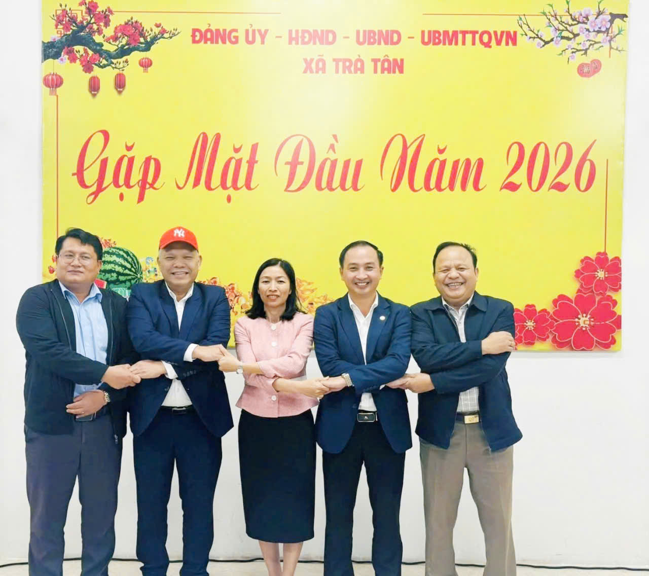 Lãnh đạo năm xã thể hiện tinh thần đoàn kết, đồng lòng hướng tới mục tiêu cùng phát triển.