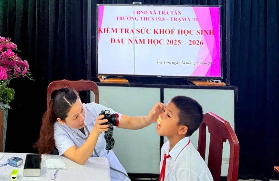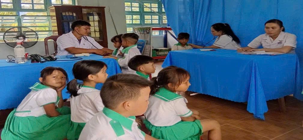 Khám sức khỏe định kỳ cho học sinh là việc làm thiết thực, mang lại hiệu quả thiết thực trong công tác chăm sóc và bảo vệ sức khỏe ban đầu. Đây là nền tảng quan trọng để xây dựng một thế hệ học sinh khỏe mạnh, là những mầm xanh tương lai của gia đình và xã hội. Hoạt động này hướng đến tất cả học sinh trong các trường trên địa bàn xã, với mục đích giúp nhà trường và phụ huynh nắm rõ tình trạng sức khỏe, kịp thời phát hiện các vấn đề bất thường để có biện pháp chăm sóc và điều trị phù hợp. Đây là việc làm cần thiết nhằm phòng ngừa bệnh tật, tạo điều kiện cho học sinh phát triển toàn diện về thể chất và tinh thần. Nội dung kiểm tra gồm: Đo chiều cao, cân nặng; khám mắt; khám tai – mũi – họng; khám răng – hàm – mặt; khám cơ – xương – khớp và các chỉ số sức khỏe cơ bản khác. Trong quá trình khám các y, bác sĩ đã ghi chép đầy đủ kết quả khám vào sổ theo dõi sức khỏe học sinh. Qua đó, nhiều trường hợp được phát hiện có các bệnh học đường như: răng miệng, mắt, tai – mũi – họng… và đã được thông báo kịp thời cho phụ huynh để theo dõi, chăm sóc hoặc điều trị ở tuyến trên. Nhìn chung, đa số học sinh có sức khỏe ổn định, đủ điều kiện để học tập và vui chơi. Nhờ sự nhiệt tình, chu đáo của đội ngũ y, bác sĩ cùng sự phối hợp của giáo viên, các em học sinh đã có tâm lý thoải mái, hợp tác tốt trong quá trình khám.