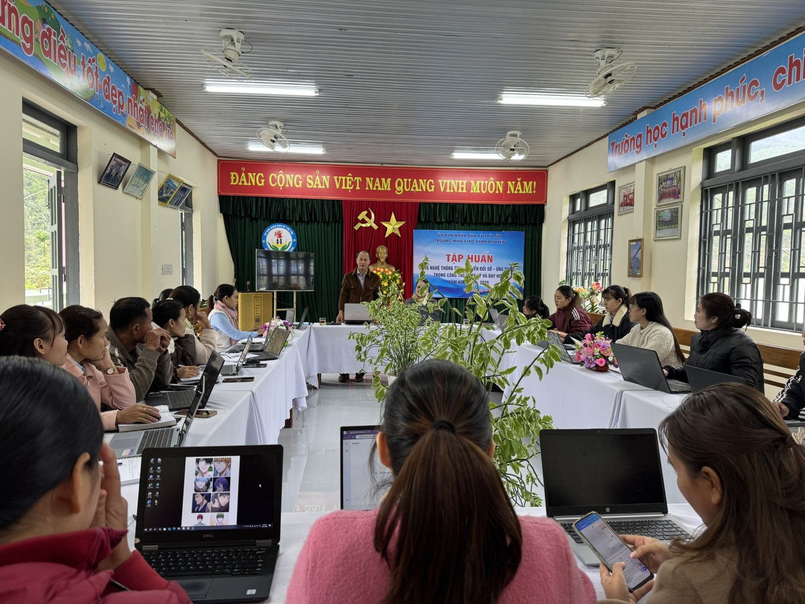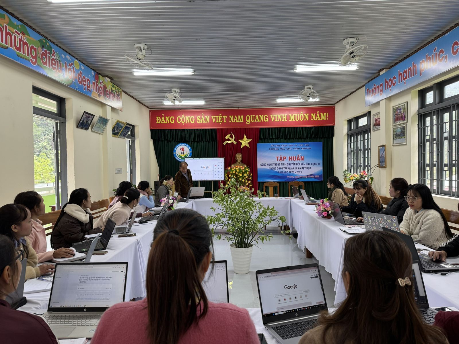 Tại buổi tập huấn, đồng chí Nguyễn Thanh Tú đã chia sẻ với đội ngũ cán bộ quản lý, giáo viên những kiến thức và kỹ năng cơ bản, thiết thực trong việc ứng dụng công nghệ thông tin và chuyển đổi số trong quản lý, giảng dạy; đồng thời giới thiệu, hướng dẫn tiếp cận và sử dụng trí tuệ nhân tạo (AI) để hỗ trợ xây dựng kế hoạch giáo dục, soạn giáo án, thiết kế hoạt động học tập, làm đồ dùng dạy học, đồ chơi và các sản phẩm phục vụ công tác nuôi dưỡng, chăm sóc, giáo dục trẻ.
