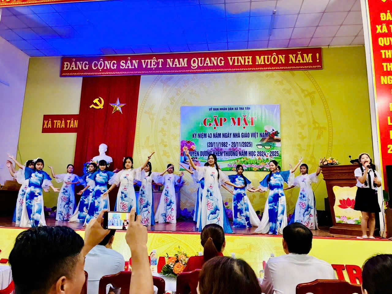 Buổi lễ diễn ra trong không khí trang trọng, ấm áp, thể hiện tinh thần tri ân sâu sắc đối với những người làm công tác giáo dục trên địa bàn xã Trà Tân.