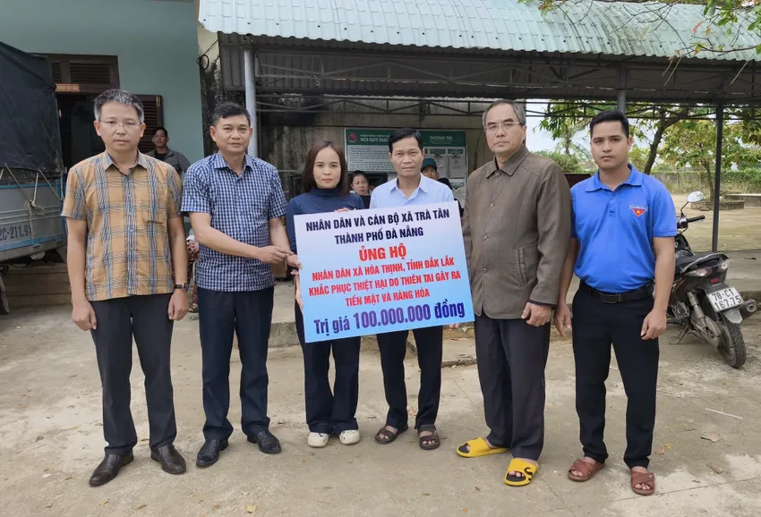 UBND xã Trà Tân đã cử đoàn công tác gồm các lãnh đạo xã trực tiếp đến thăm, trao hỗ trợ và động viên người dân tại xã Hòa Thịnh. Đoàn mang theo số quà trị giá 100 triệu đồng, bao gồm tiền mặt, hàng hóa thiết yếu và nhu yếu phẩm nhằm giúp bà con sớm ổn định cuộc sống.