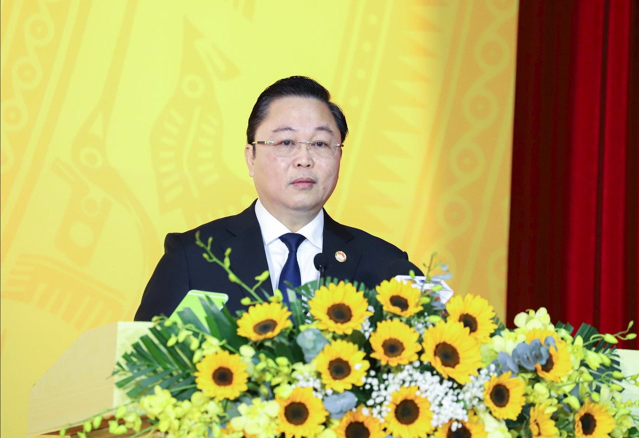 Lãnh đạo thành phố và các đại biểu dự đại hội. Ảnh: NGỌC PHÚ
